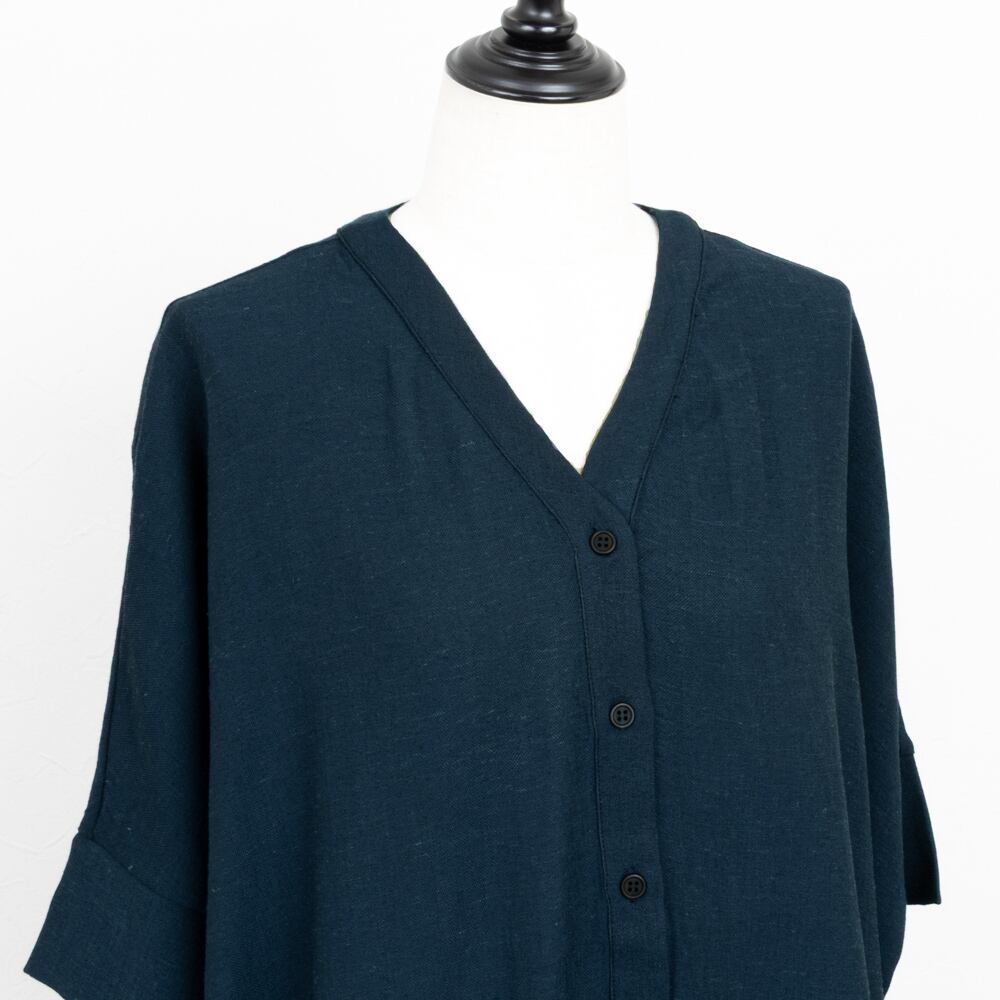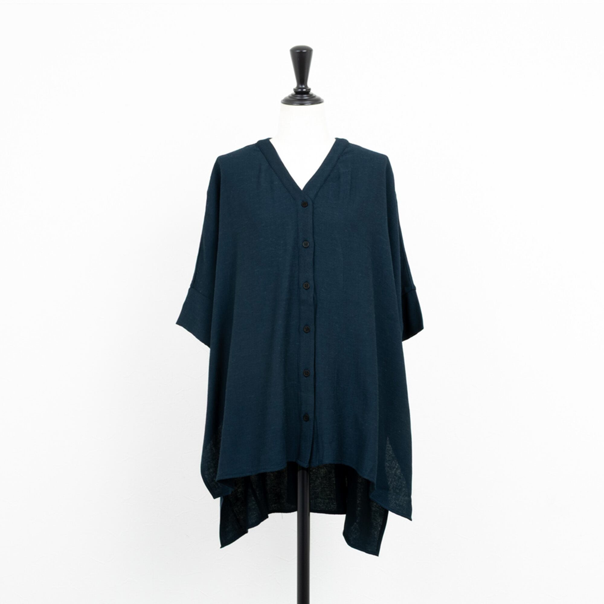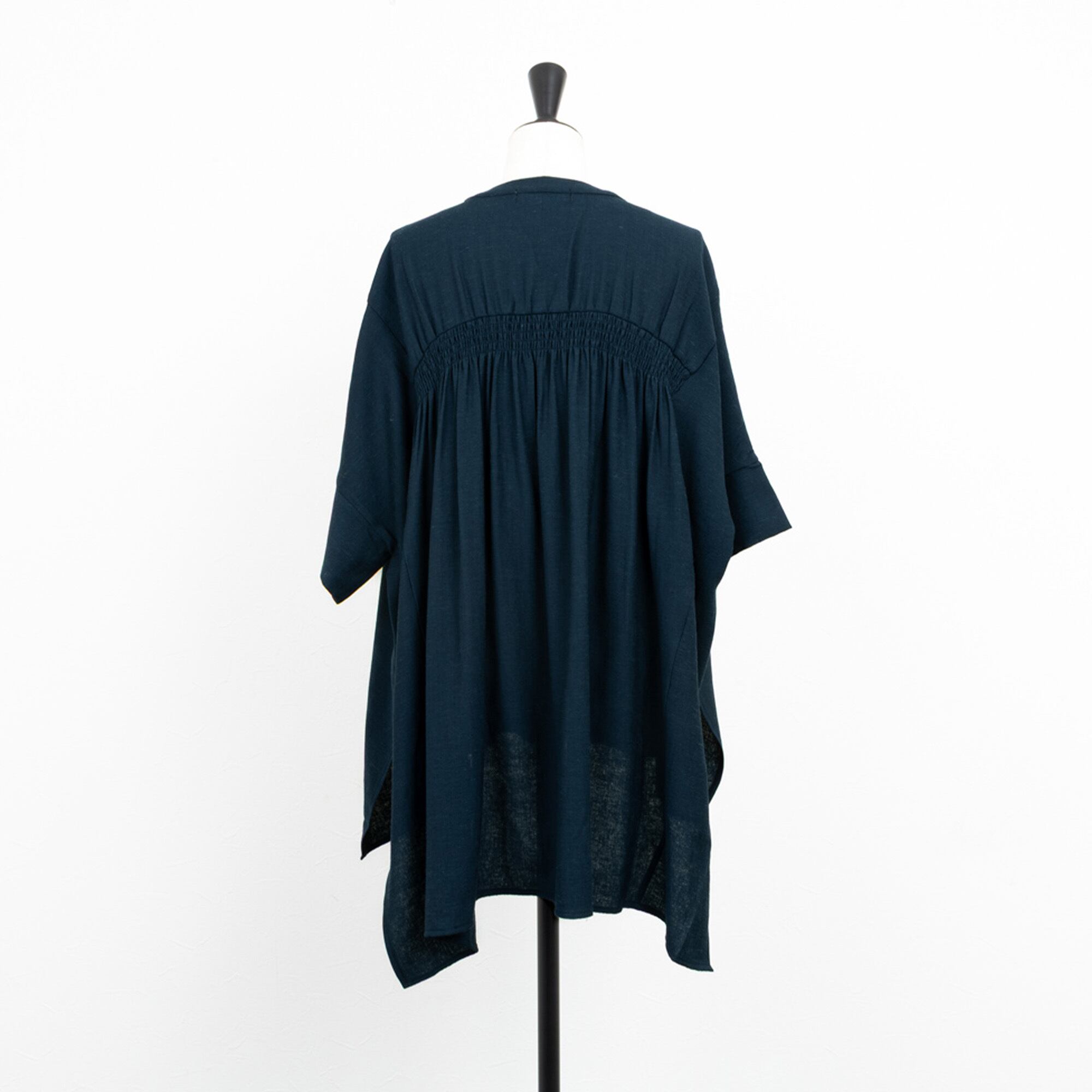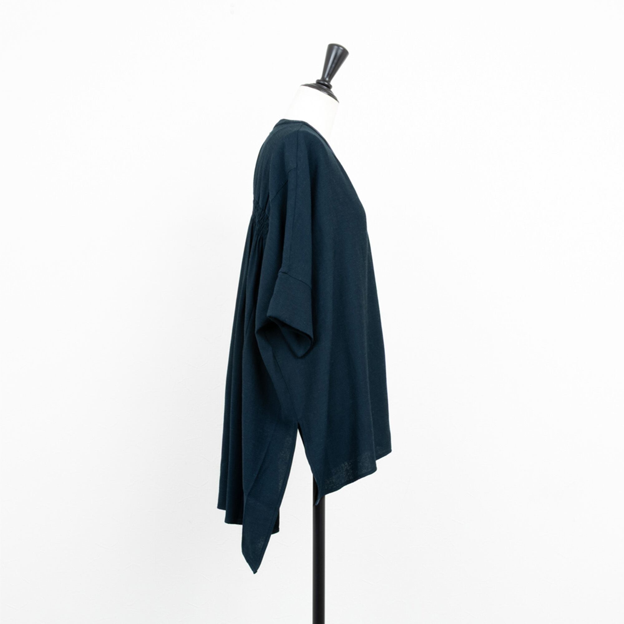 【Maglia Plus/マリアプラス】シャーリングハーフスリーブシャツ(ネイビー)
