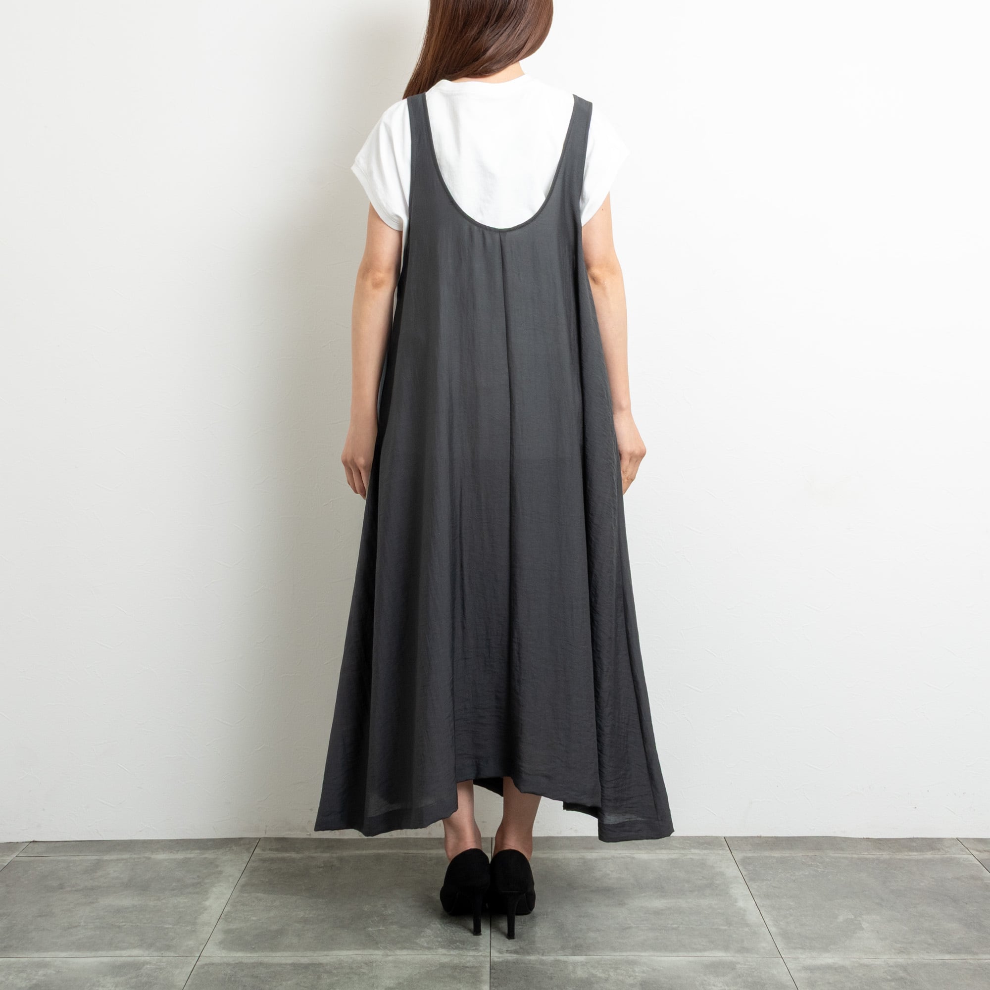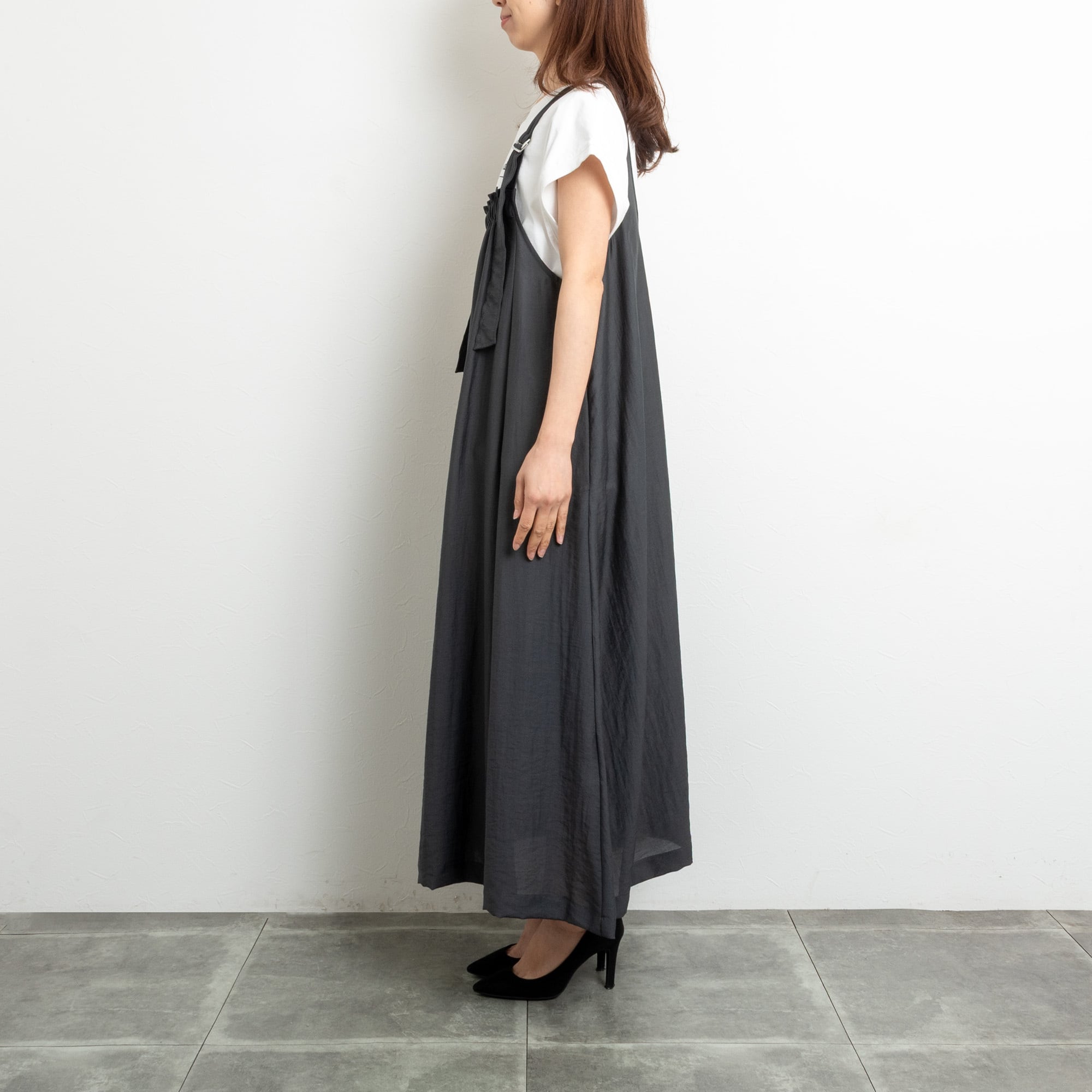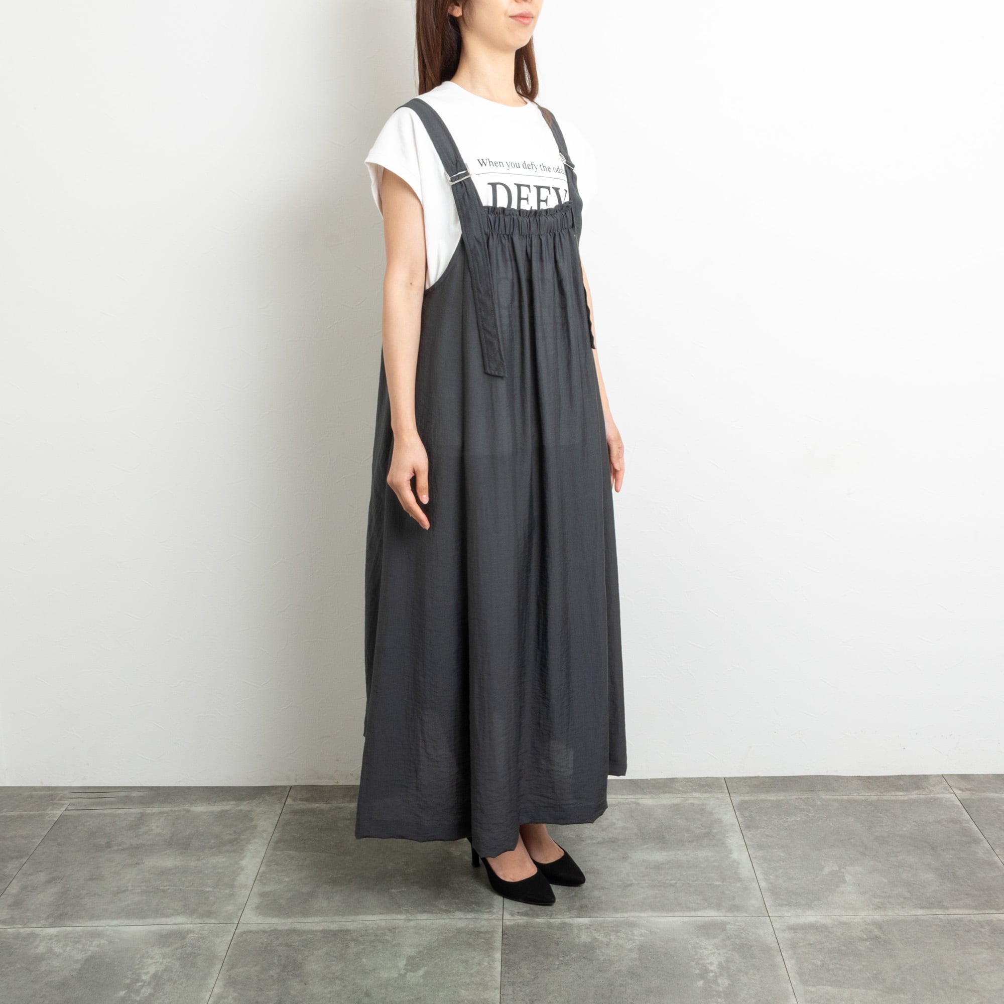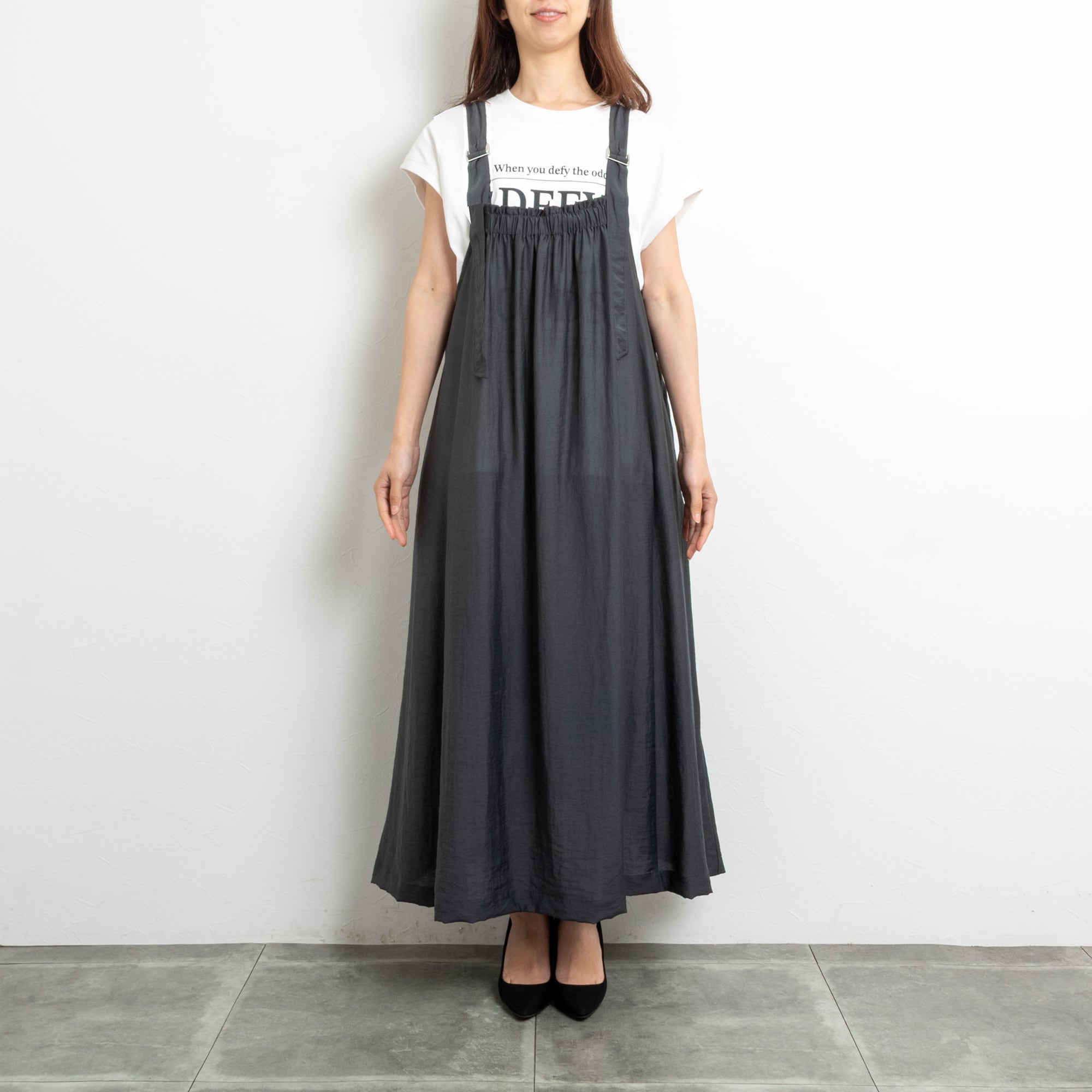 【PRIORITY/プライオリティー】肩ひもシアージャンパースカート(ブラック)