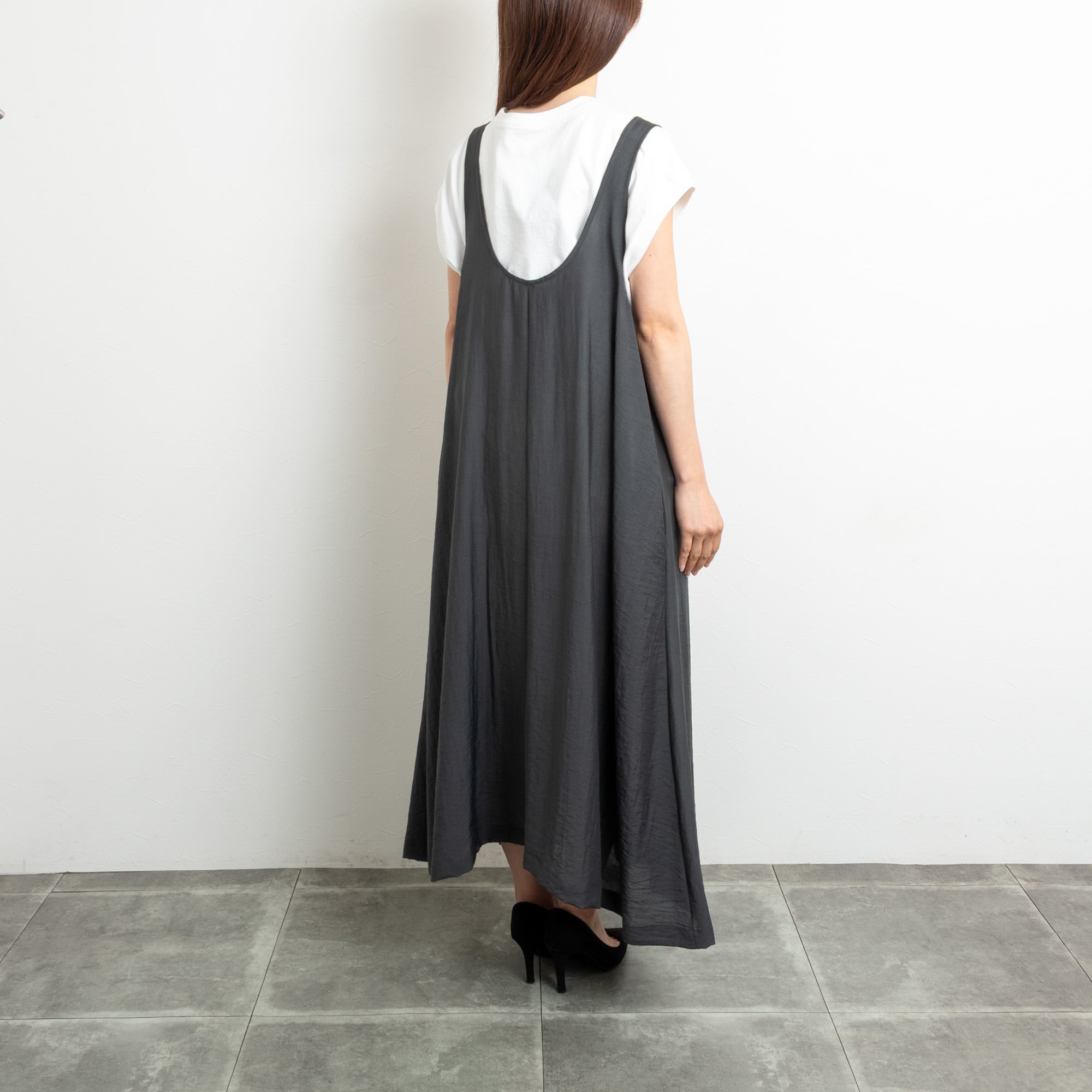 スクエアネックとUネックで前後2wayな着こなしができるジャンパースカート。