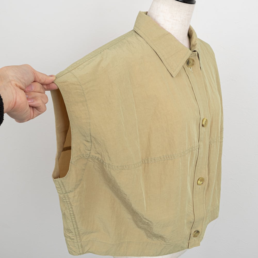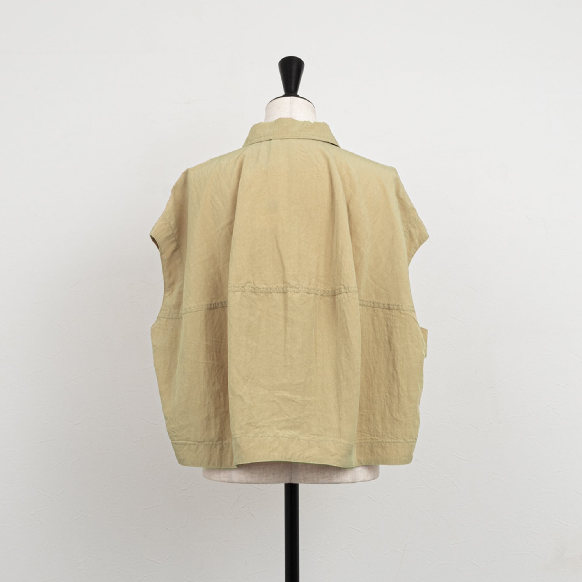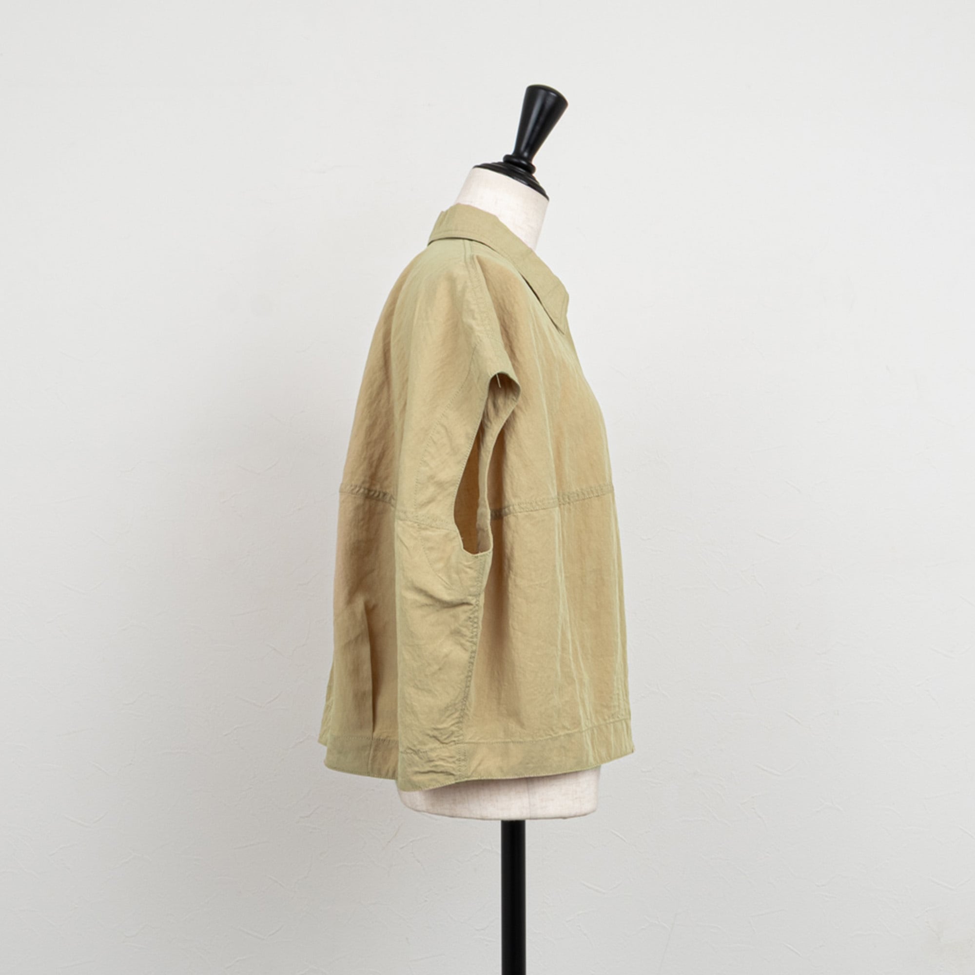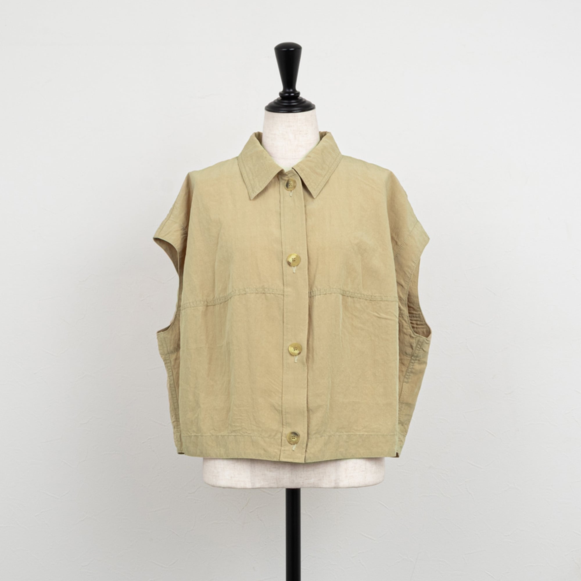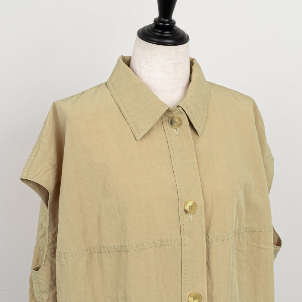 ベストとしても使えるハリのあるバレルシルエットのフレンチスリーブシャツ