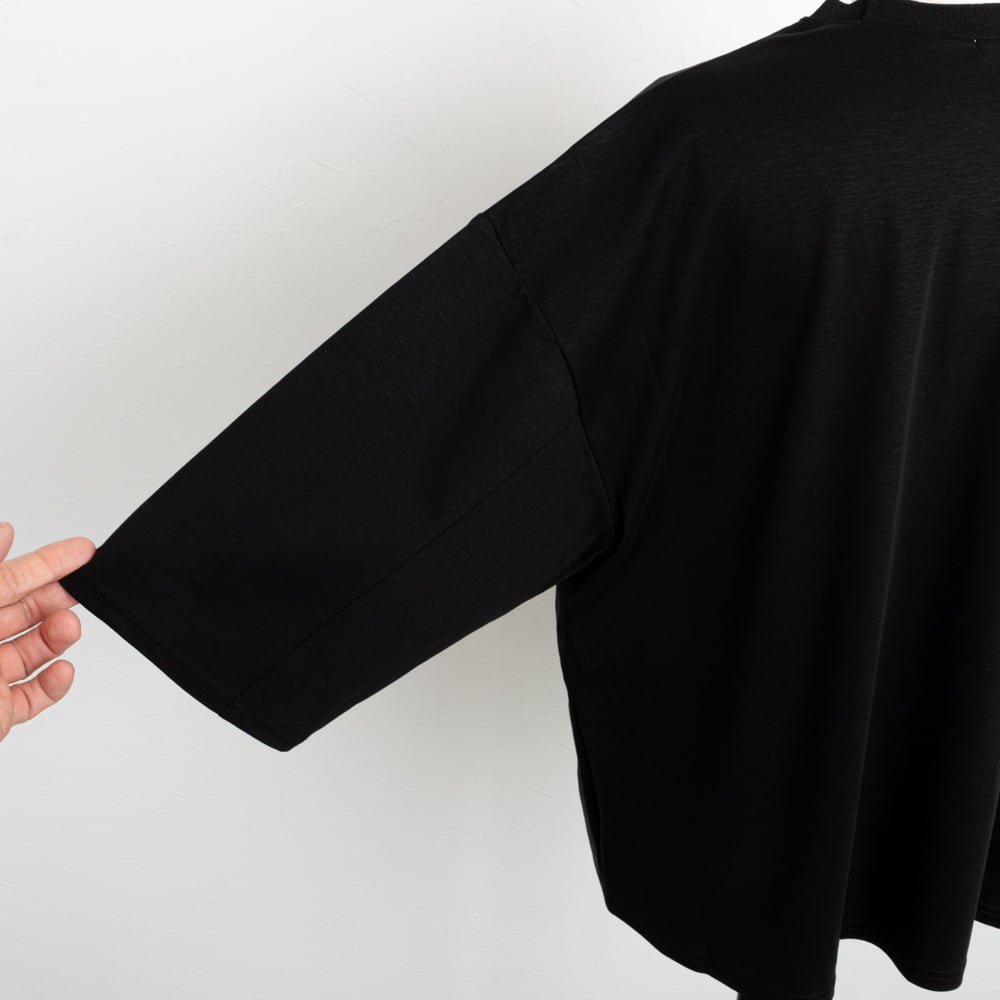 ゆとりのあるアームホールに、5分袖が二の腕も程よくカバーしてくれます。
