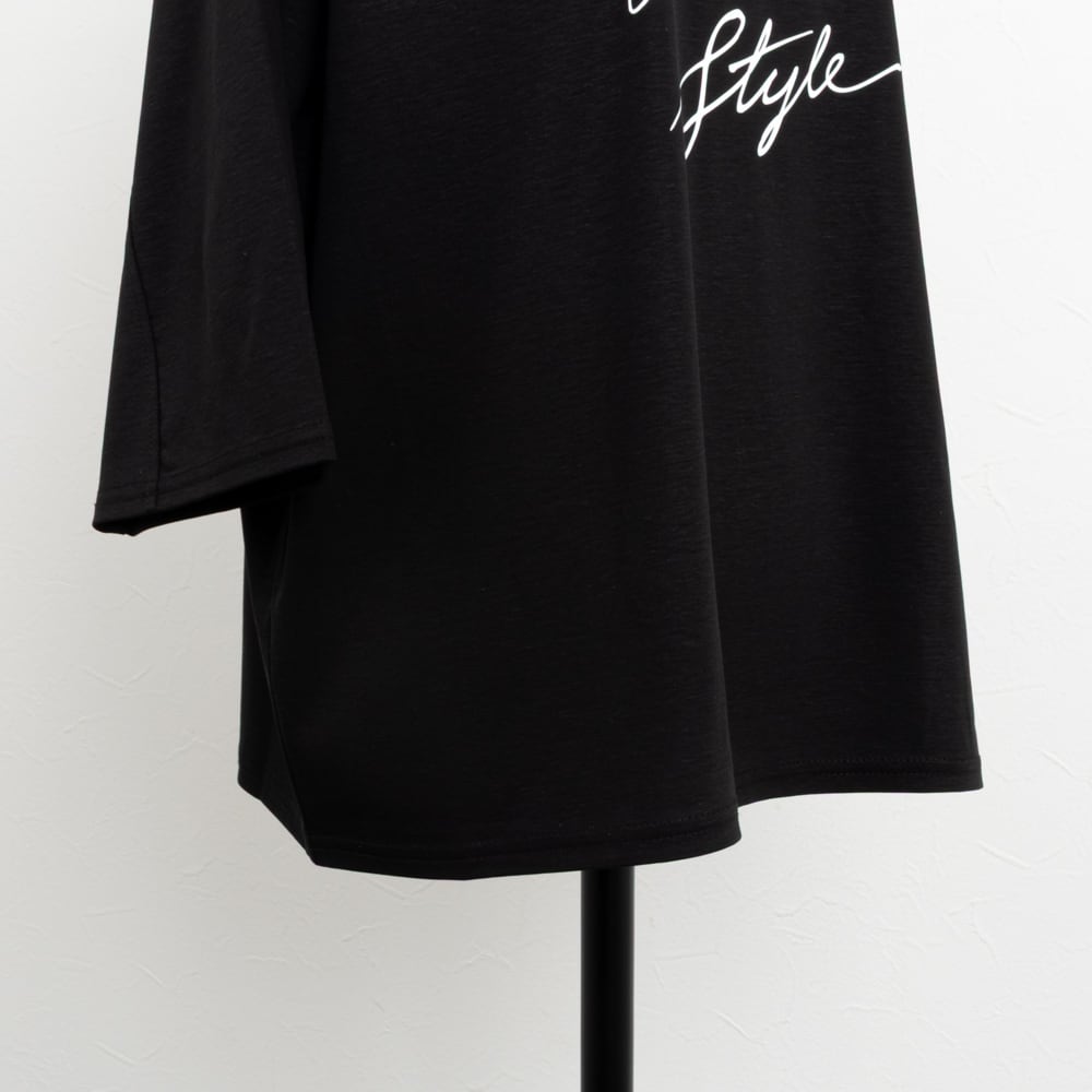きれいめな手書きのロゴと、袖後ろの切り替えラインがポイントです。