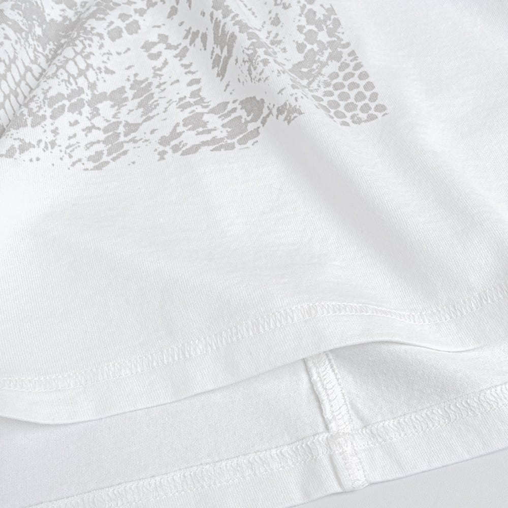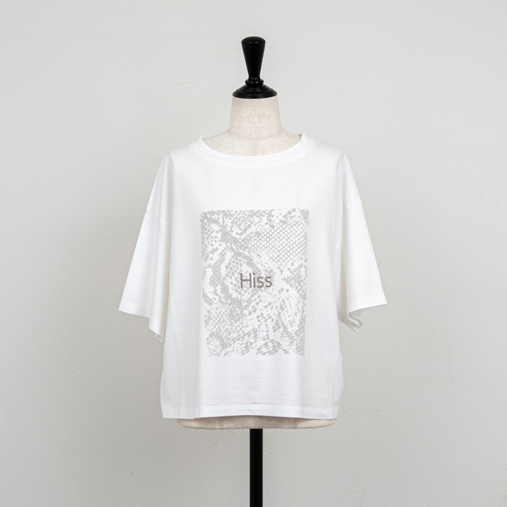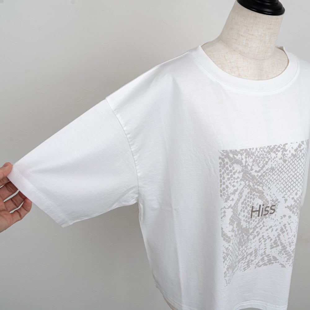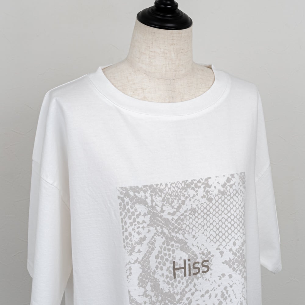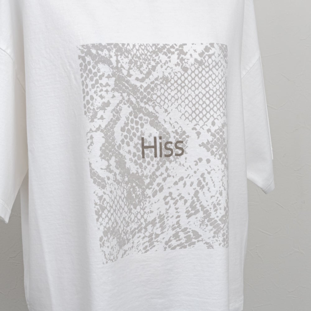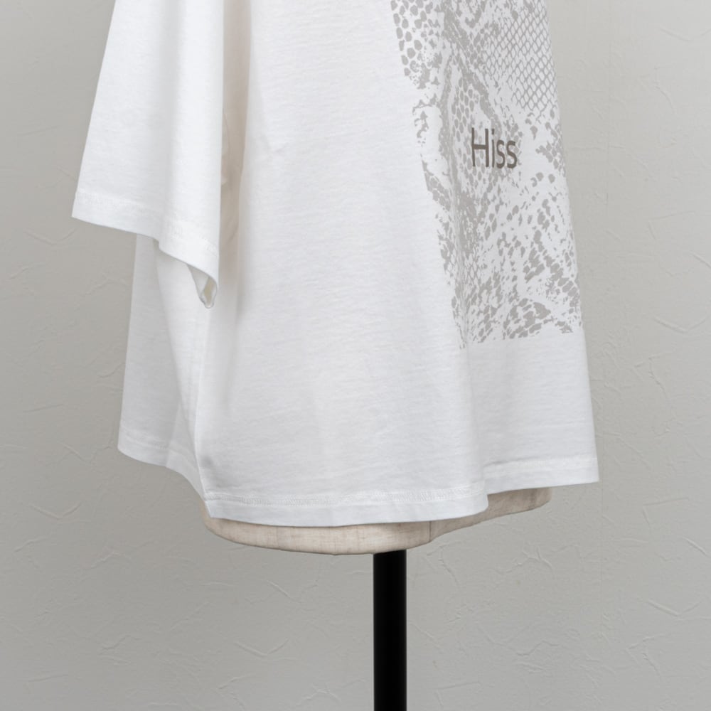 パイソン柄と「Hiss」ロゴがリンクした遊び心あるフォトプリントTシャツ