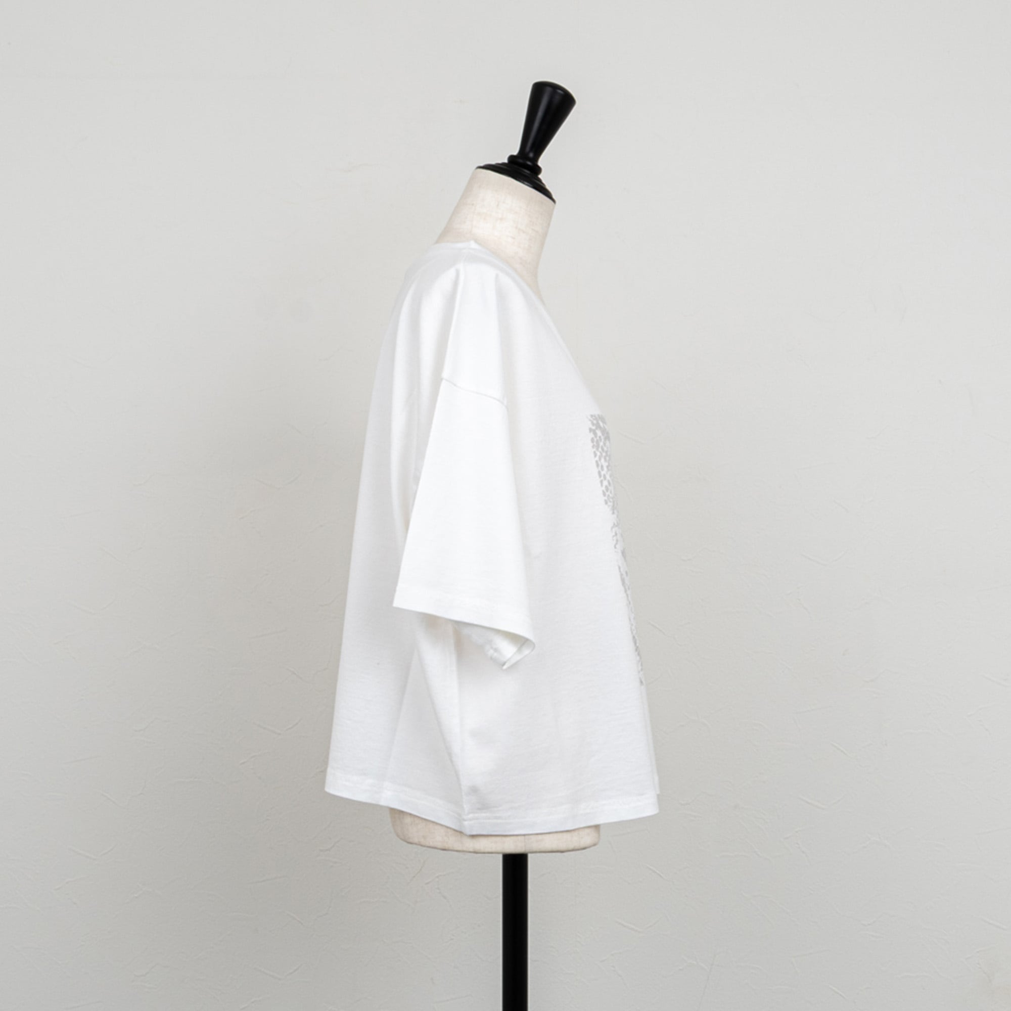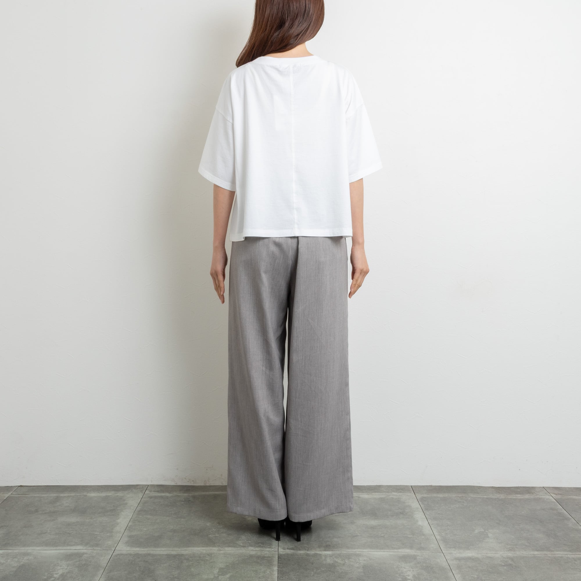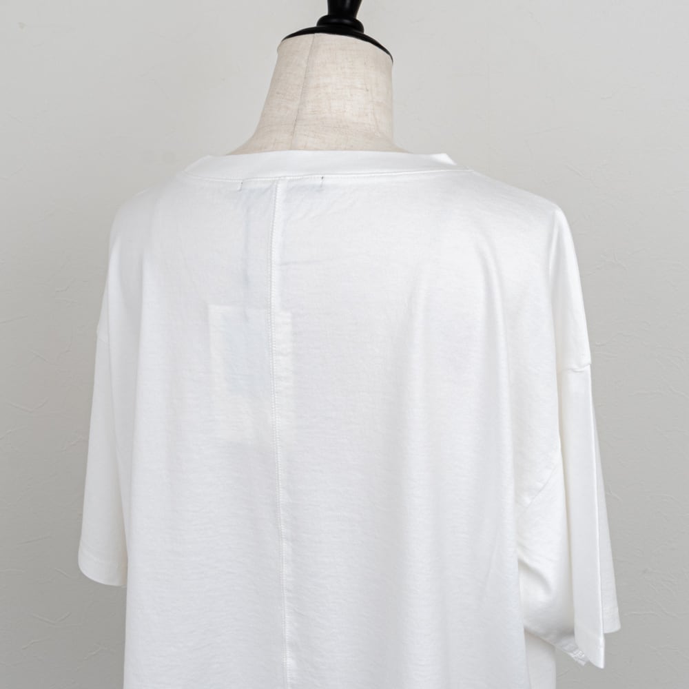 コンパクトな丈感とゆったりしたサイズ感が絶妙なバランスで、どんなボトムスとも合わせやすいTシャツ。