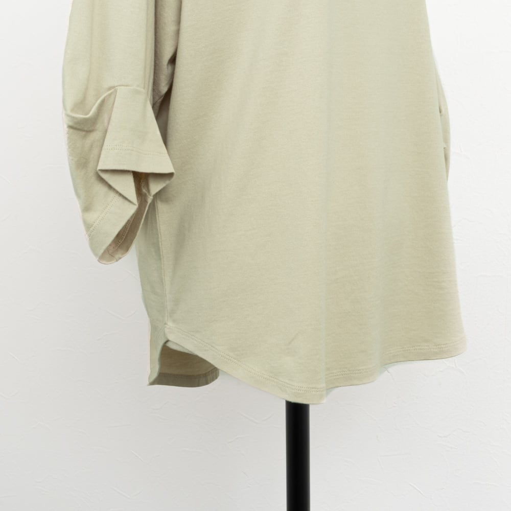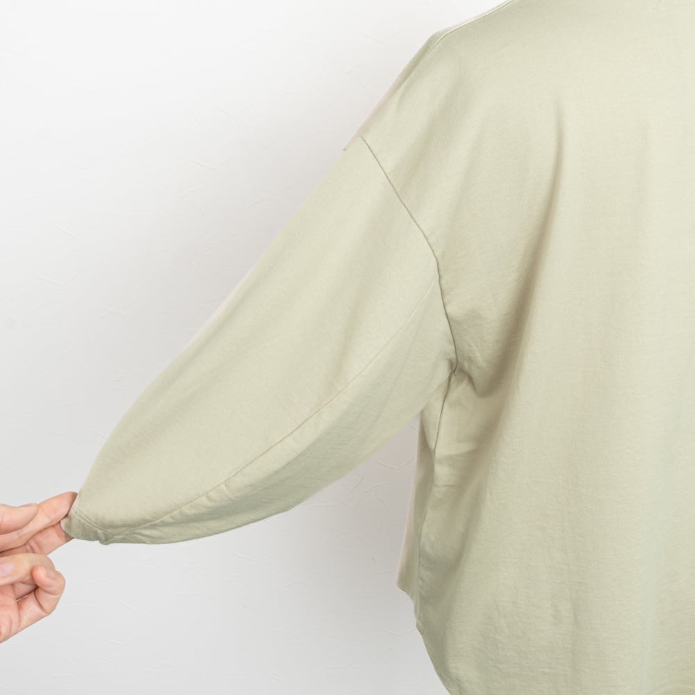 シンプルながら袖がポイントになり、一枚で着てサマになるアイテムです。