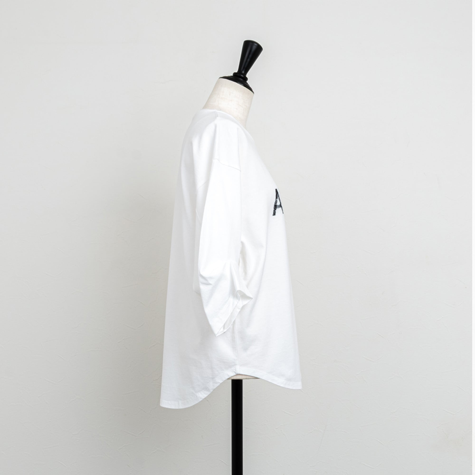 手書き風の「AMULET」刺繍がさりげなく映える、大人のためのロゴTシャツ