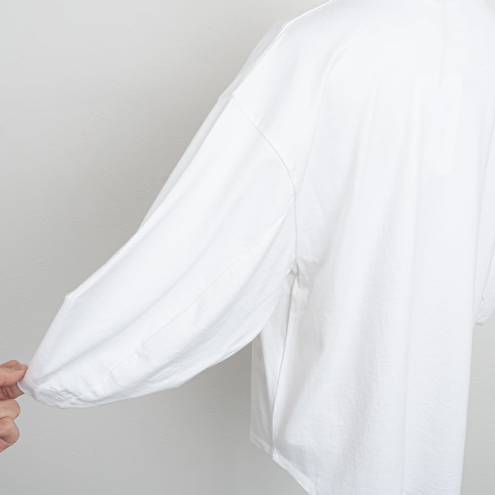 シンプルながら袖がポイントになり、一枚で着てサマになるアイテムです。