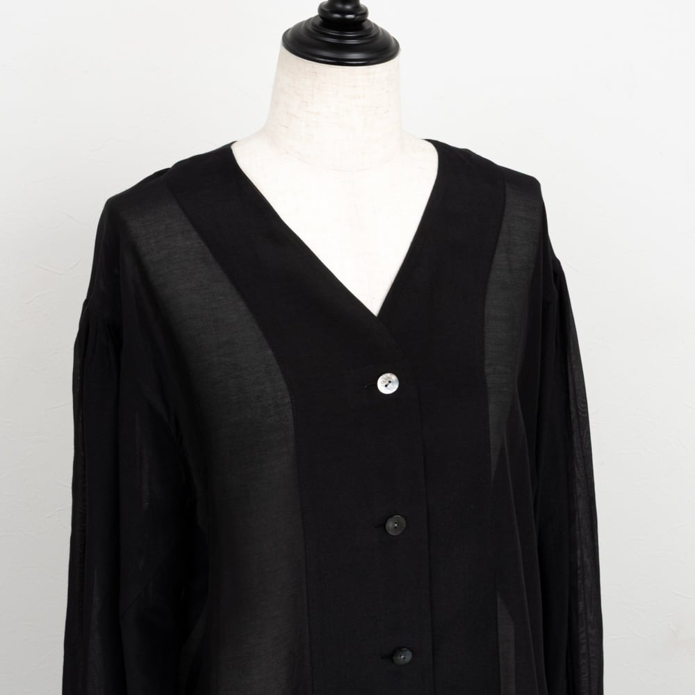 【PASSIONE/パシオーネ】綿シルクVネックシアーブラウス(ブラック)