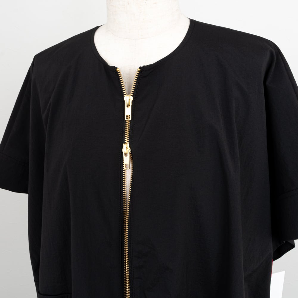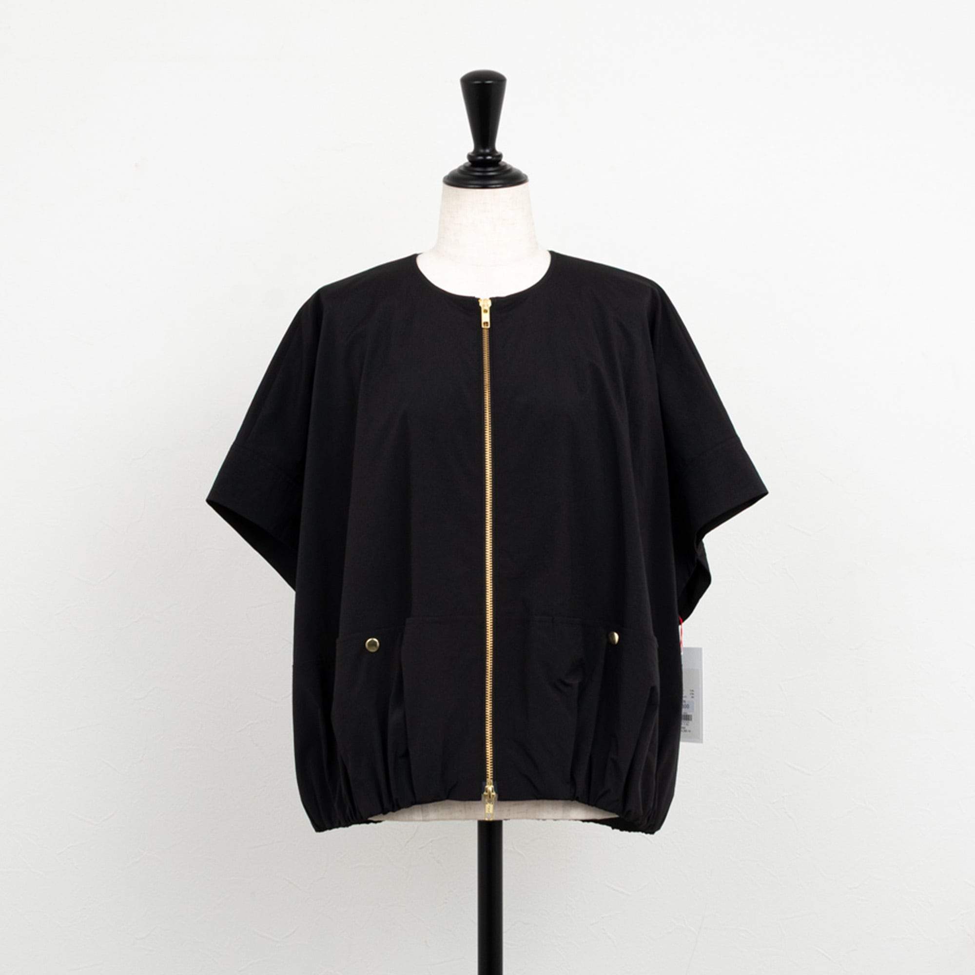 【PASSIONE/パシオーネ】フロントジップギャザーヘムベスト(ブラック)