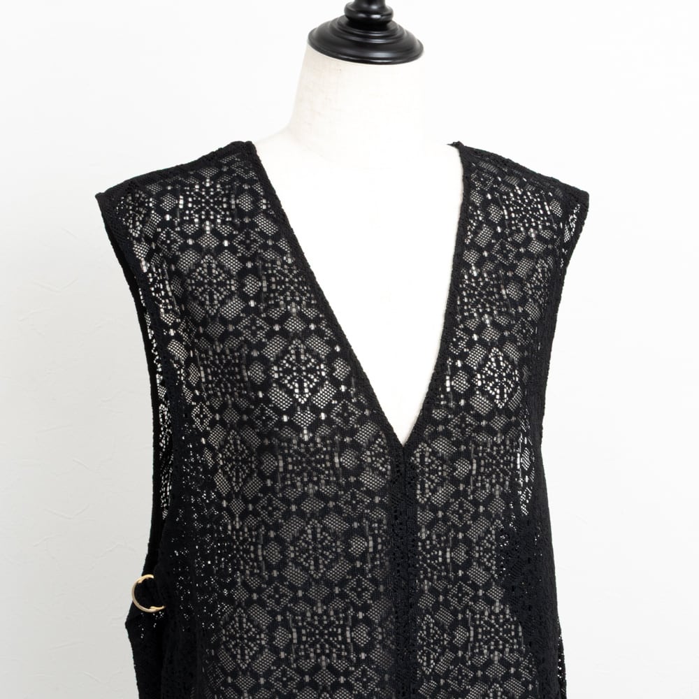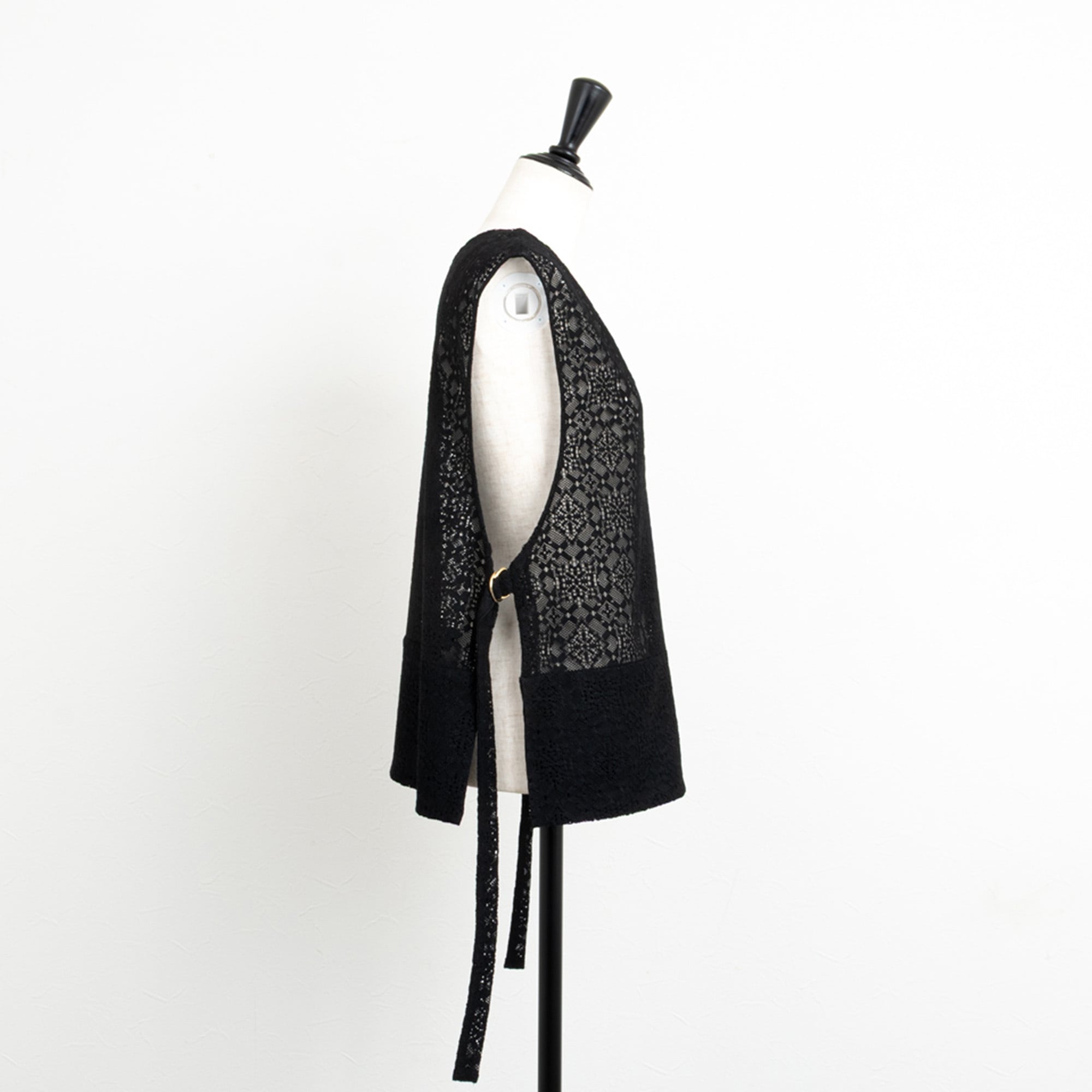 【ma couleur/マクルール】幾何ラッセルレース レイヤードプルオーバー(ブラック)