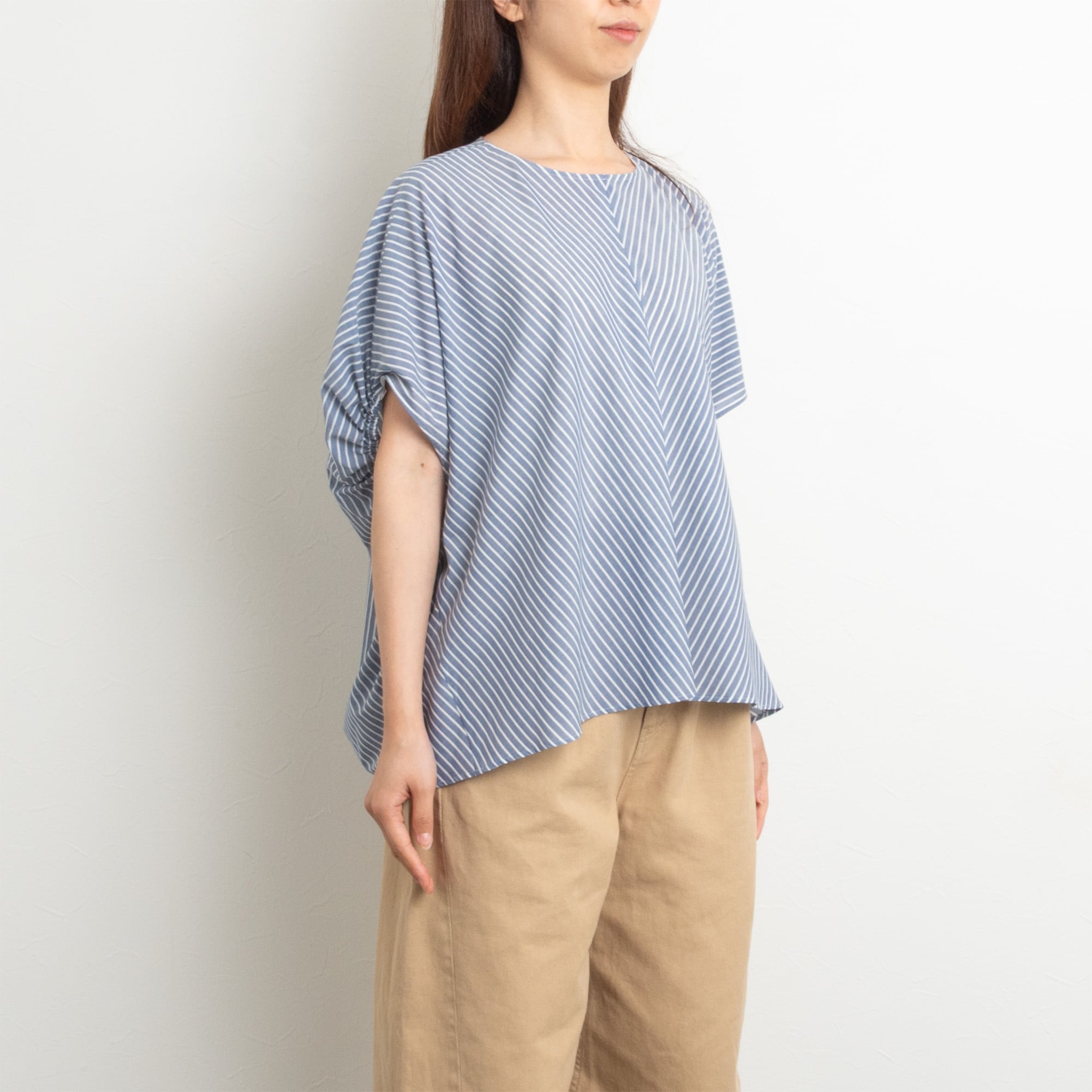 【Doneeyu/ドニーユ】シルキーフローストライプポンチョブラウス(ネイビー)