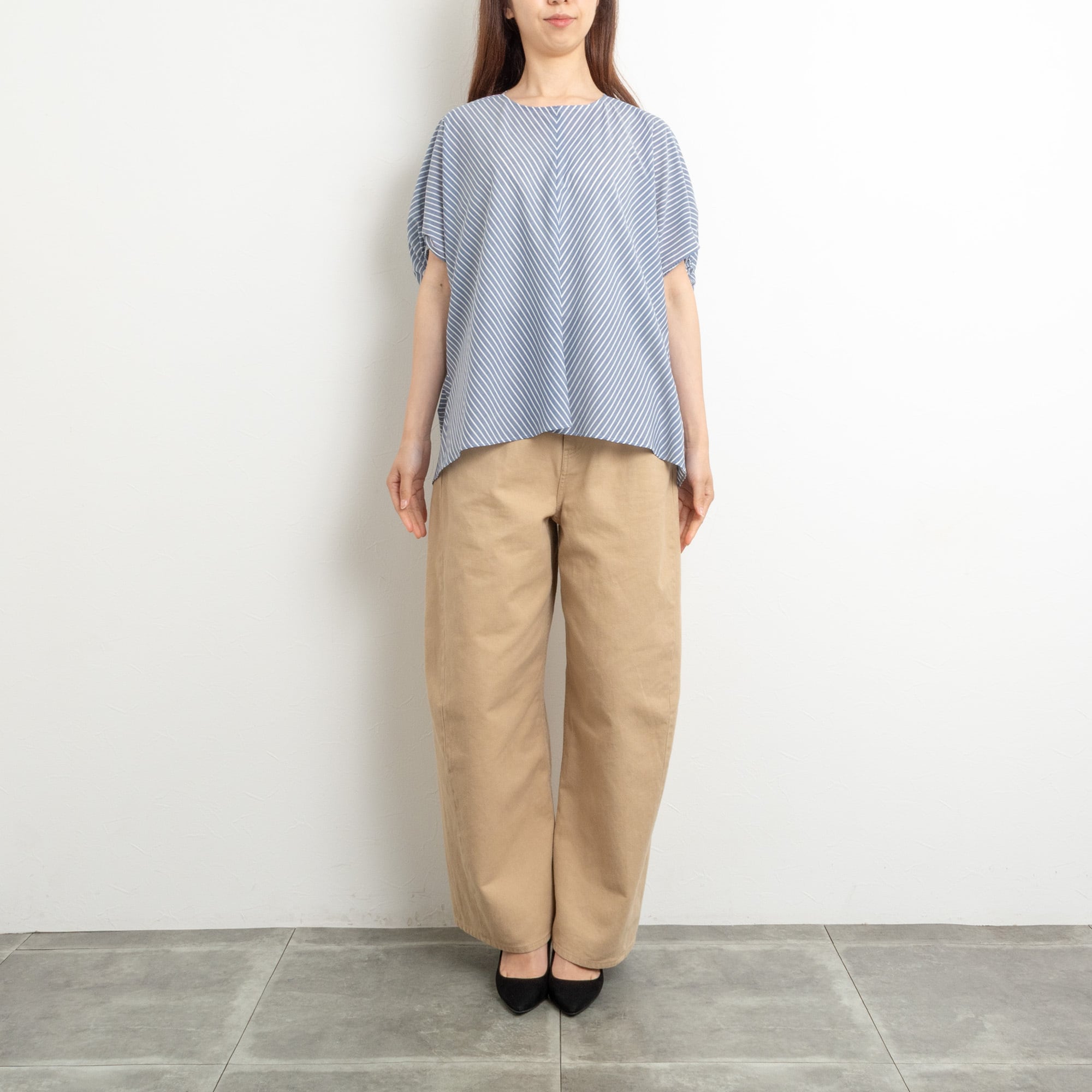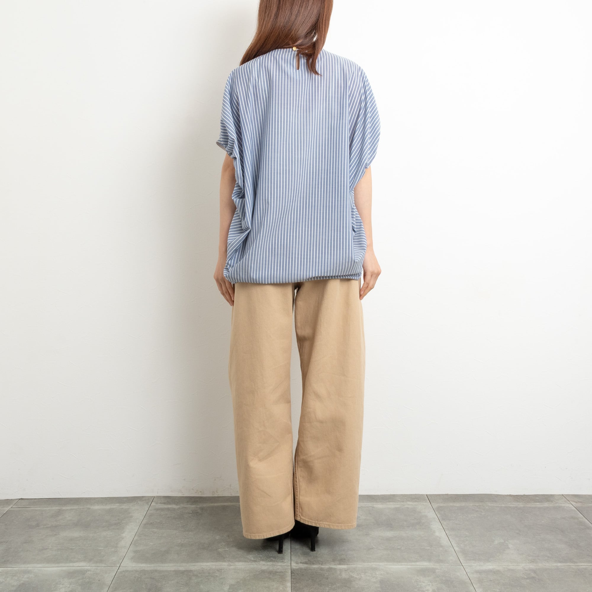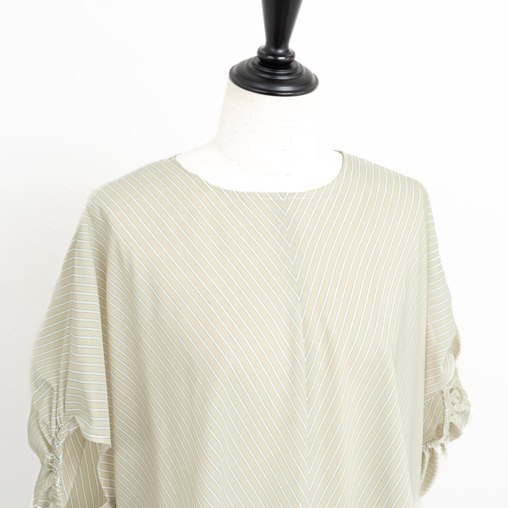 【Doneeyu/ドニーユ】シルキーフローストライプポンチョブラウス(ベージュ)