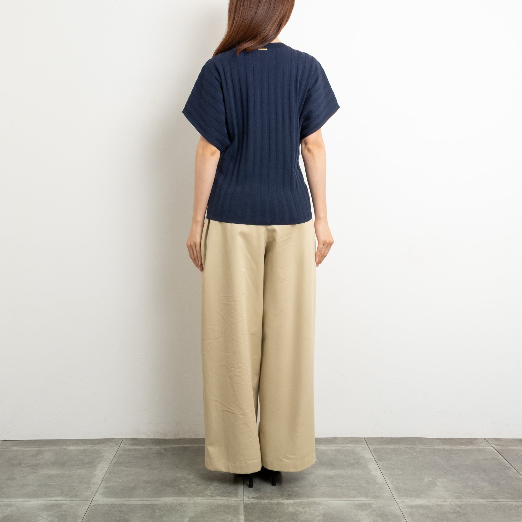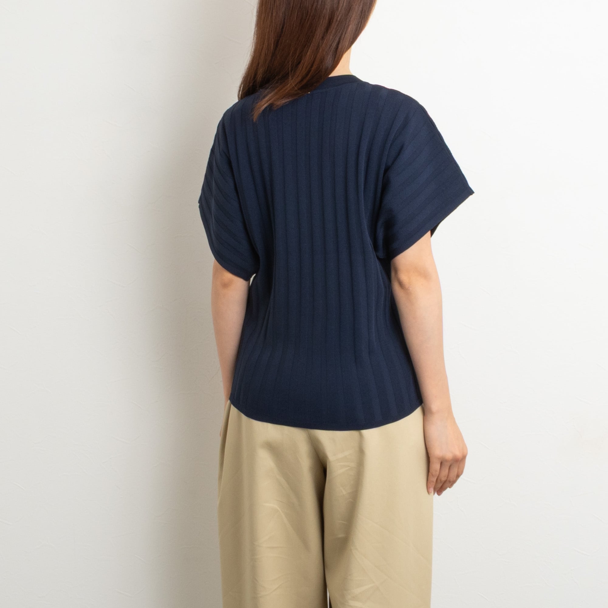 ボディラインの出にくいワイドリブに、腕周りの楽なドルマンスリーブのプルオーバー。