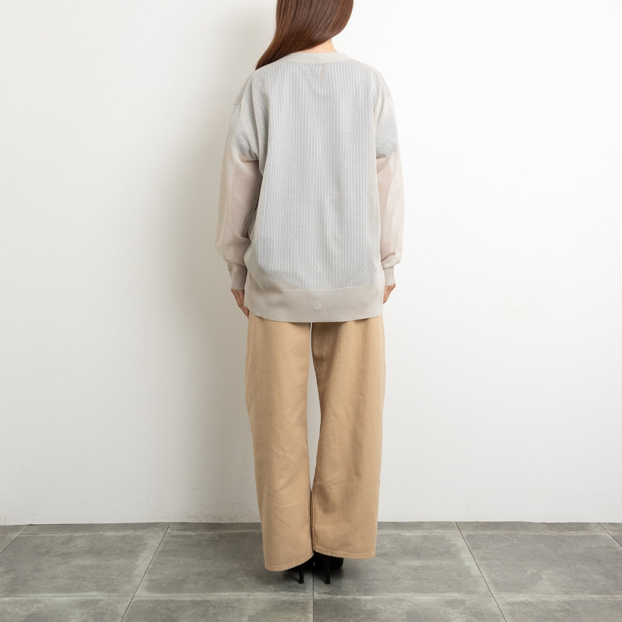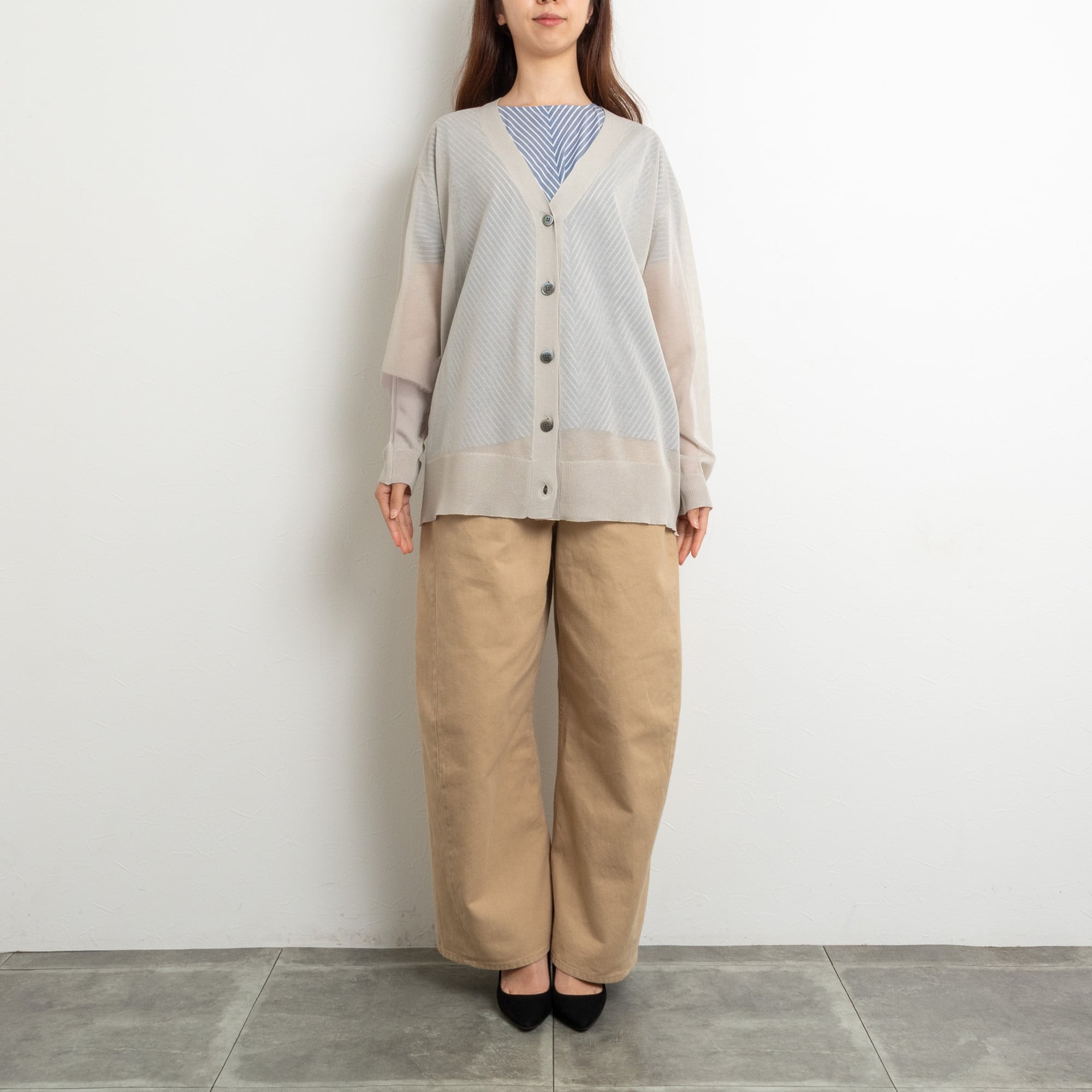 腰回りをしっかりカバーしてくれるシアーロングカーディガン。