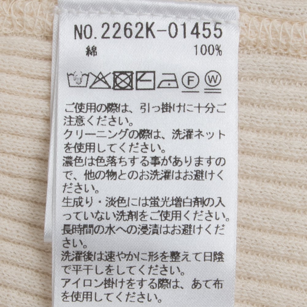 上質な綿の強撚糸を使用した、肌離れの良い凹凸のあるリブニットはさらりと快適な着心地です。