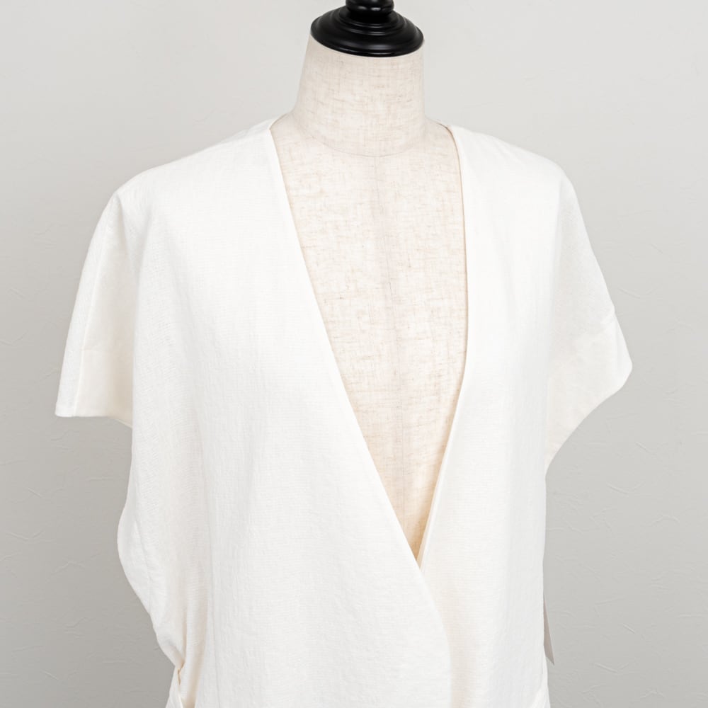 二の腕までかかるドロップショルダーで夏の軽い羽織りにピッタリなアイテム。