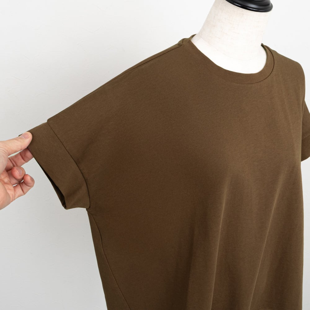 ドルマンスリーブでゆったりしたボックスシルエットのカットソー。