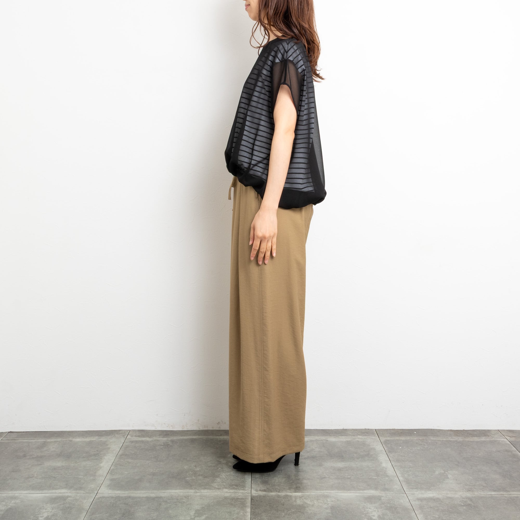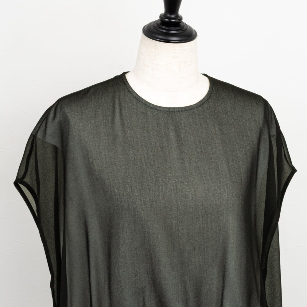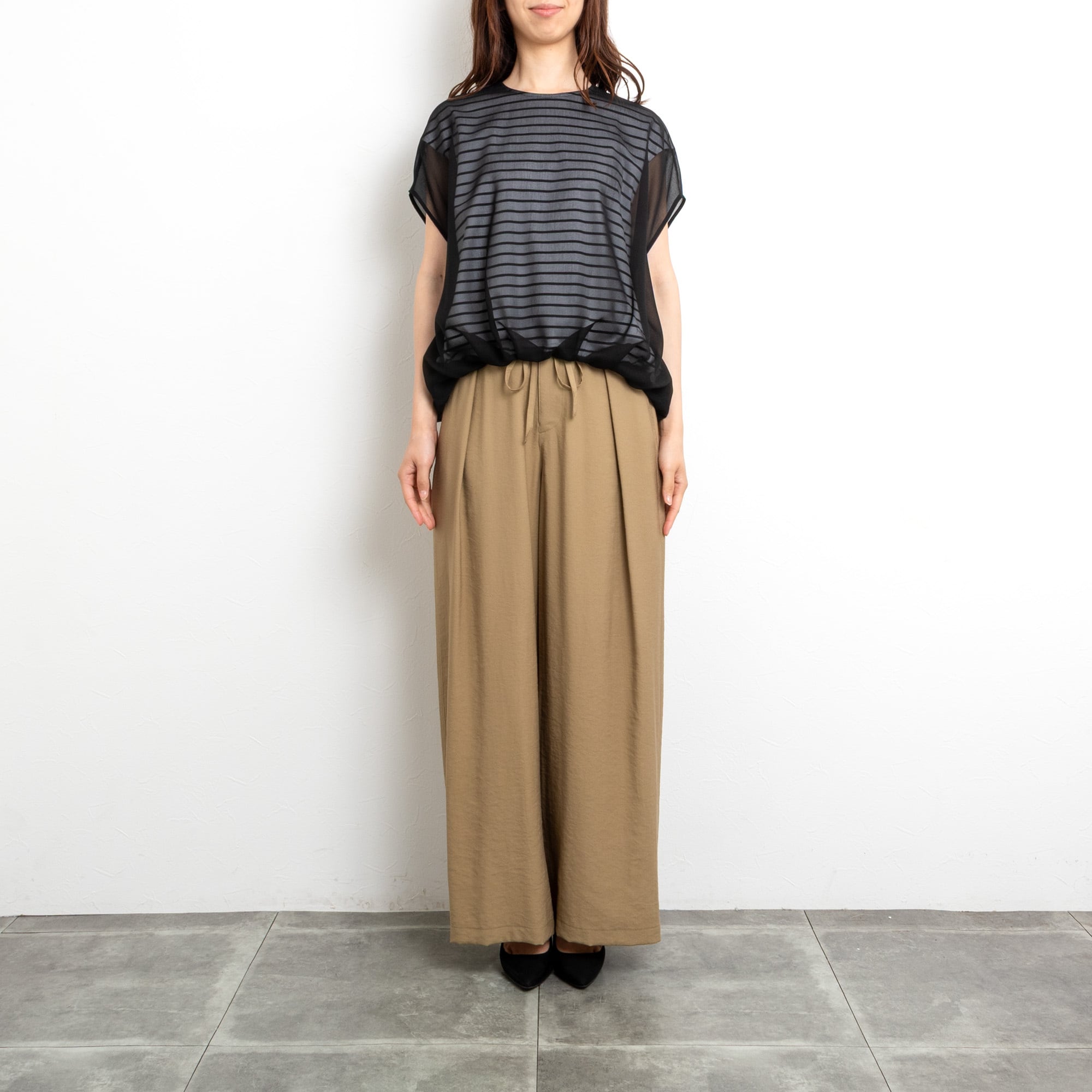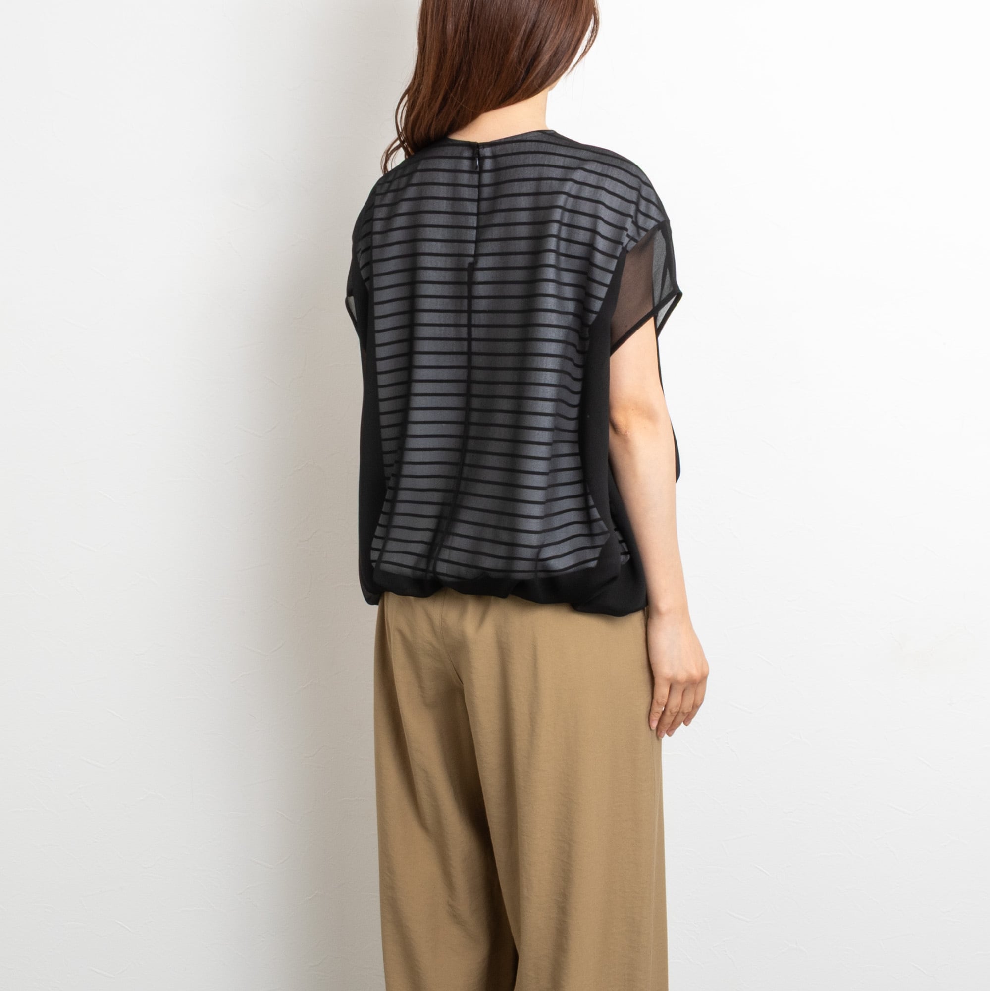 フレンチスリーブのカットソーに、チュールがレイヤード風にドッキングされたプルオーバー。