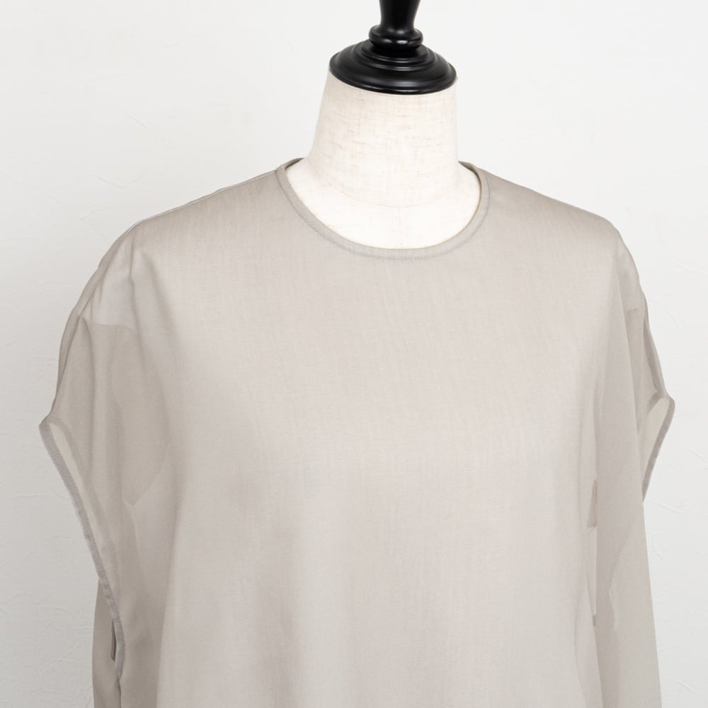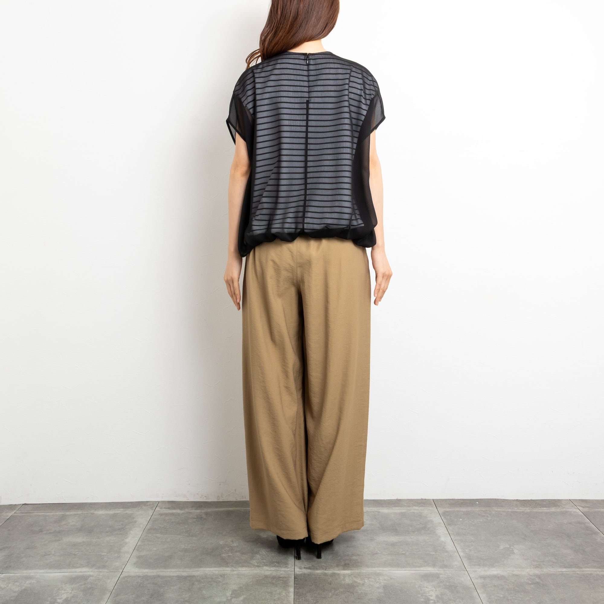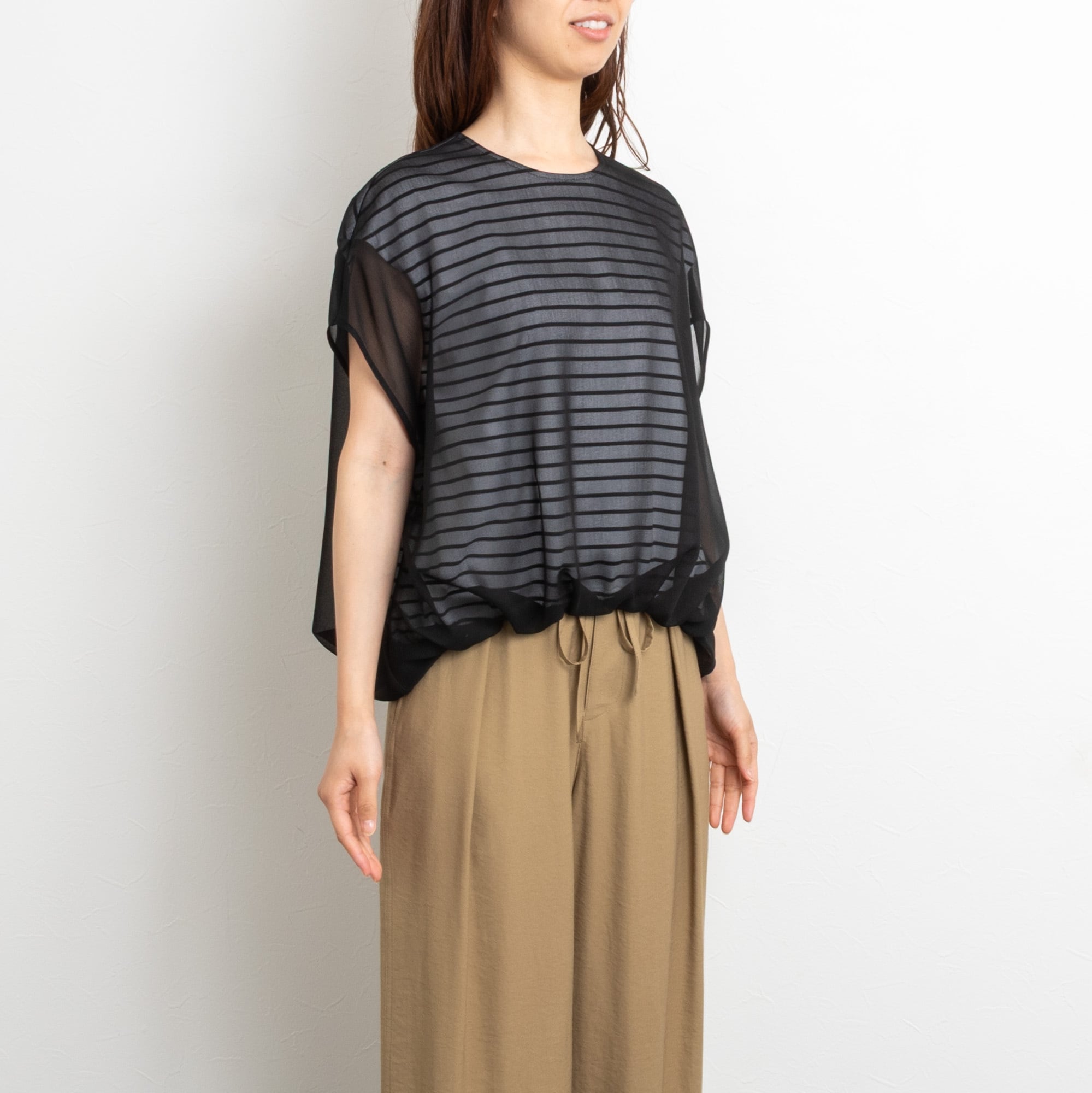 フレンチスリーブのカットソーに、チュールがレイヤード風にドッキングされたプルオーバー。