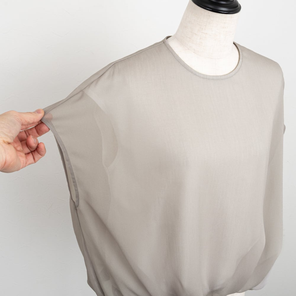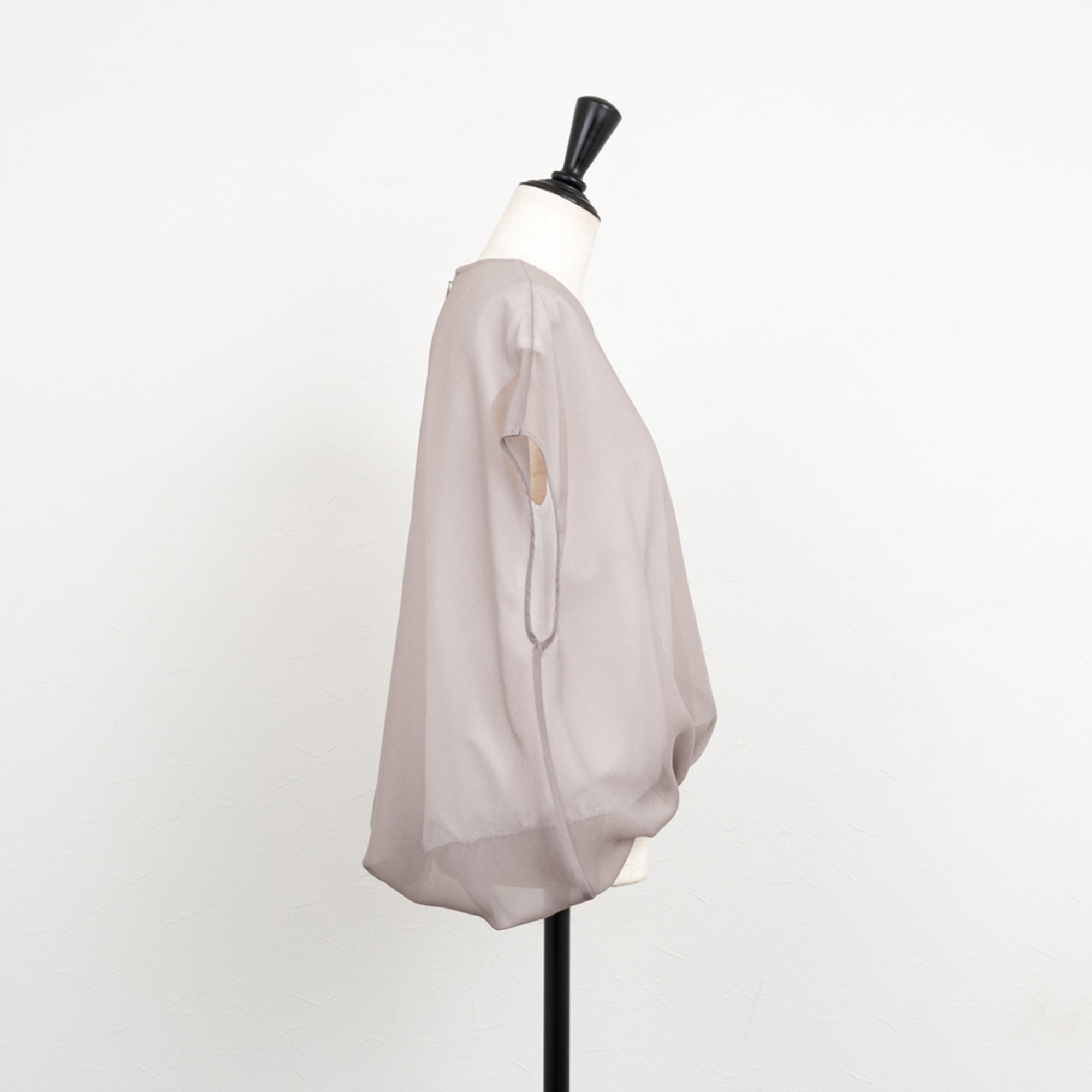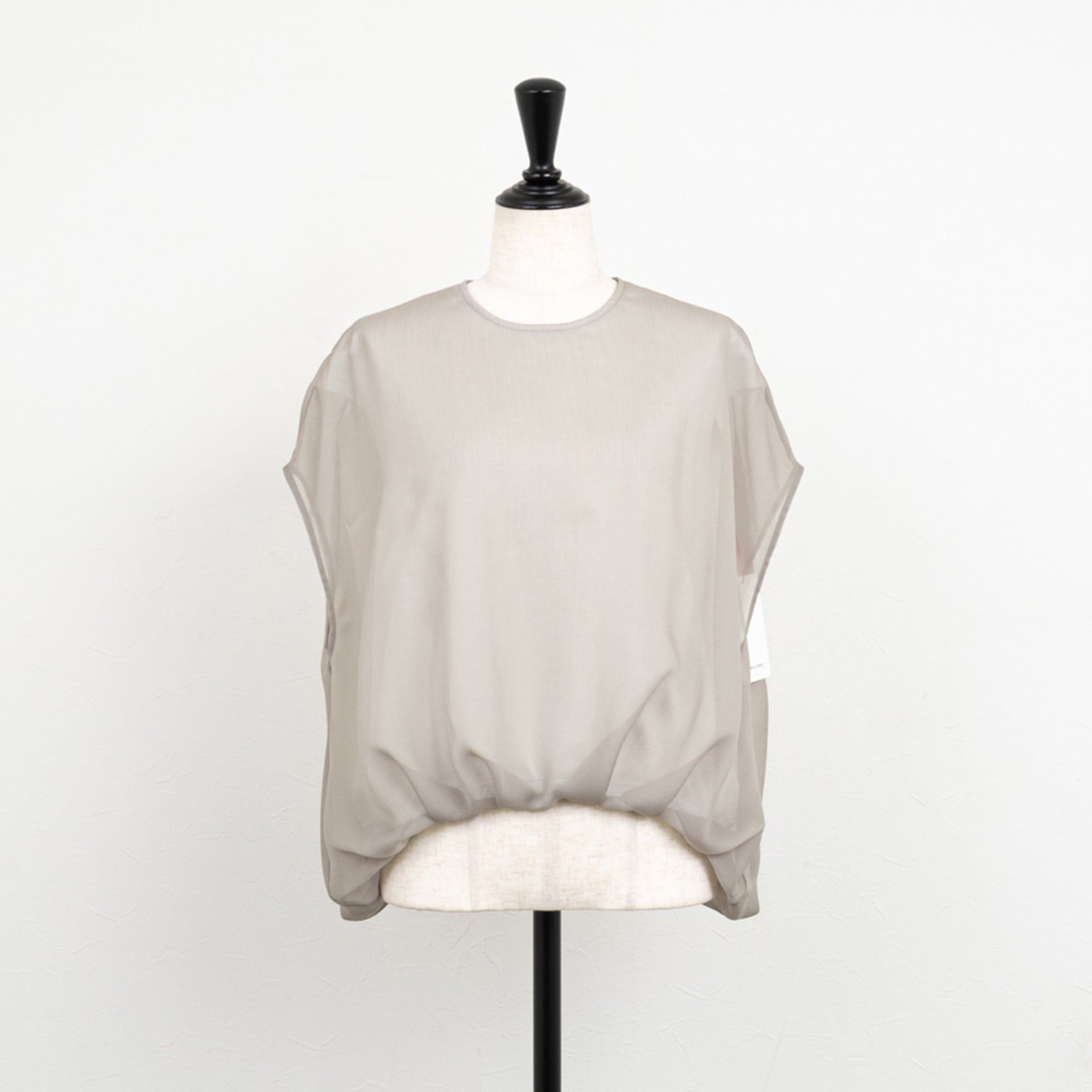フレンチスリーブのカットソーに、チュールがレイヤード風にドッキングされたプルオーバー。