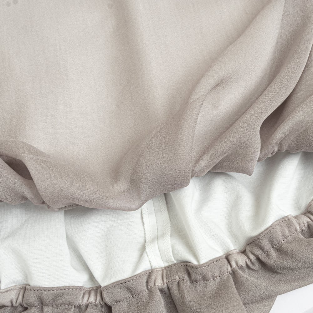 グレーみの明るいベージュのチュールにホワイトのカットソー