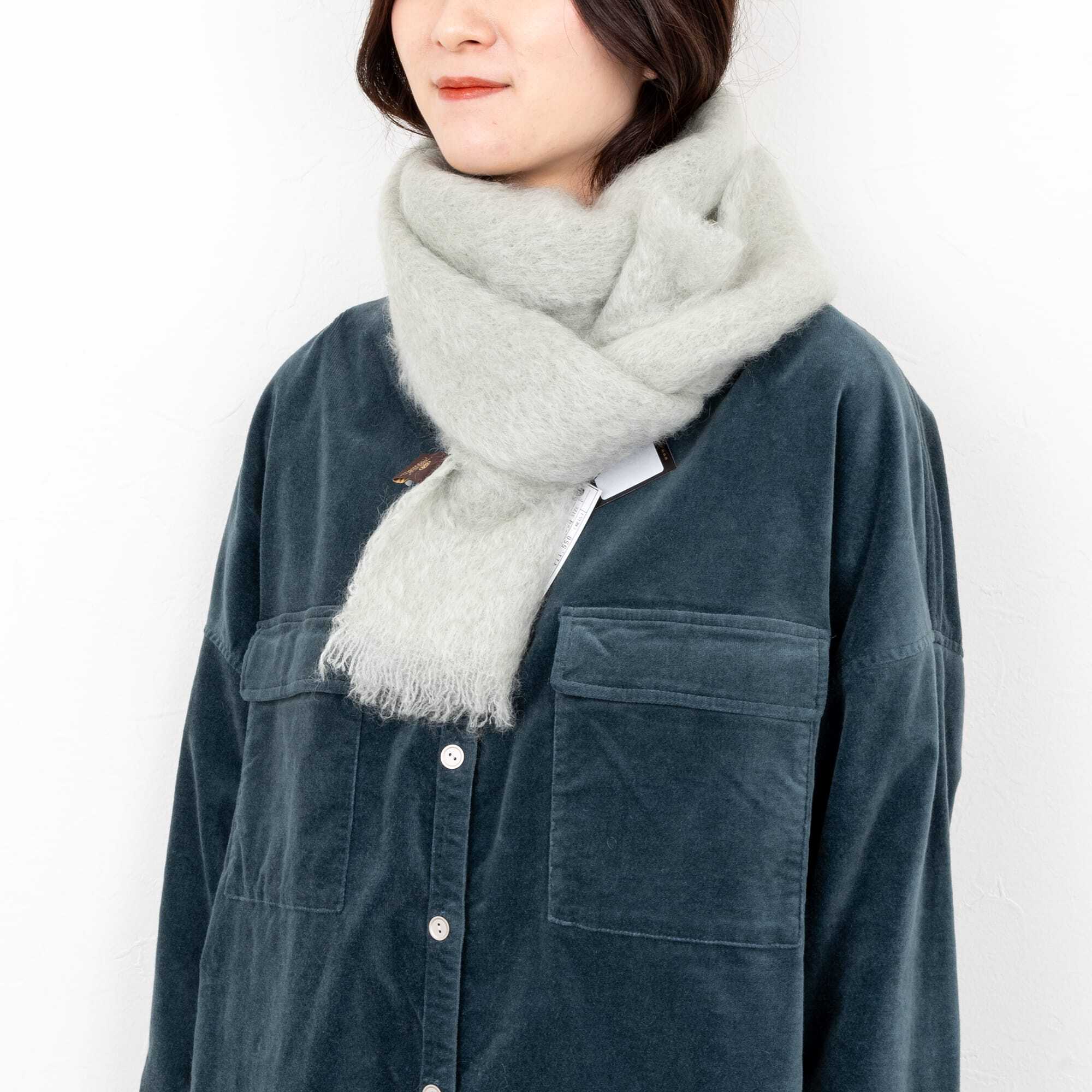 上質な天然繊維を使用したモヘアマフラー。毛足の長いモヘアをふんわりやわらかく編み上げたており、軽くて暖かな着用感です。